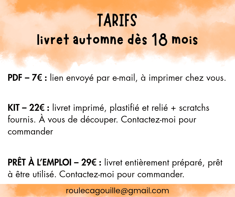 Livret d’activités automne (18 mois – 3 ans) : 19 activités à manipuler pour développer la motricité fine, la coordination et l’éveil des tout-petits, autour des couleurs et des découvertes de saison. PDF à imprimer.