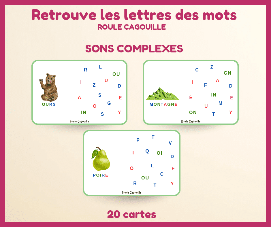 Chaque carte associe une image à un mot contenant un ou plusieurs sons complexes, pour aider l’enfant à progresser en douceur.
